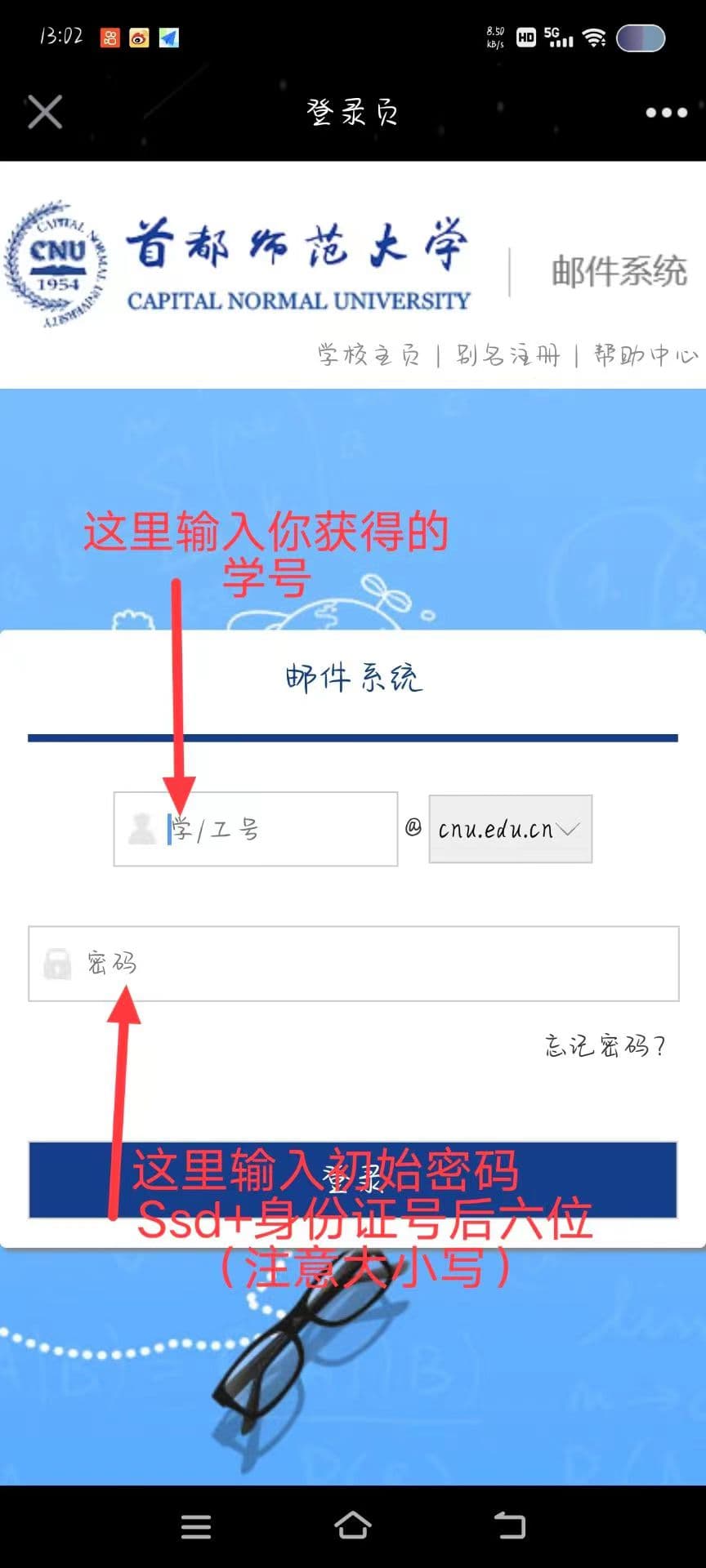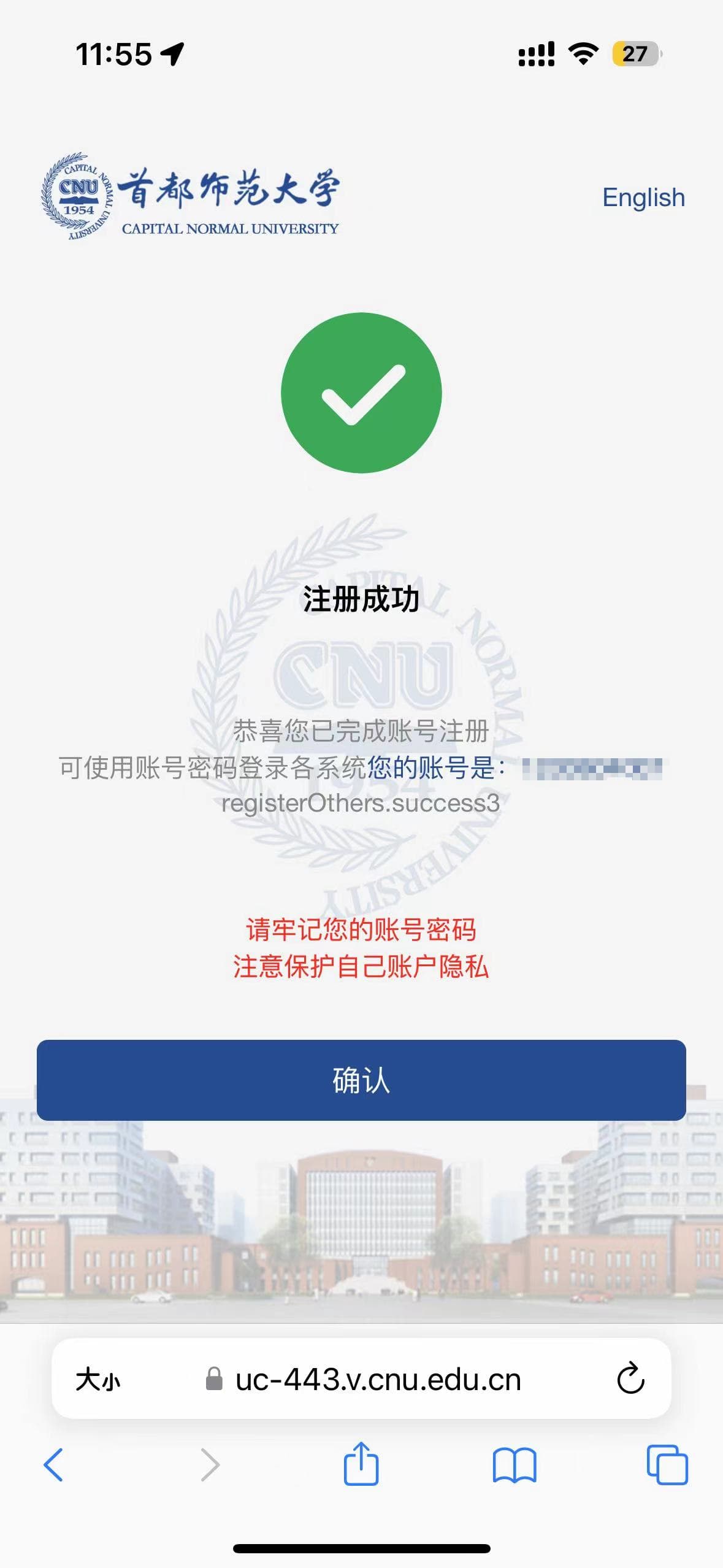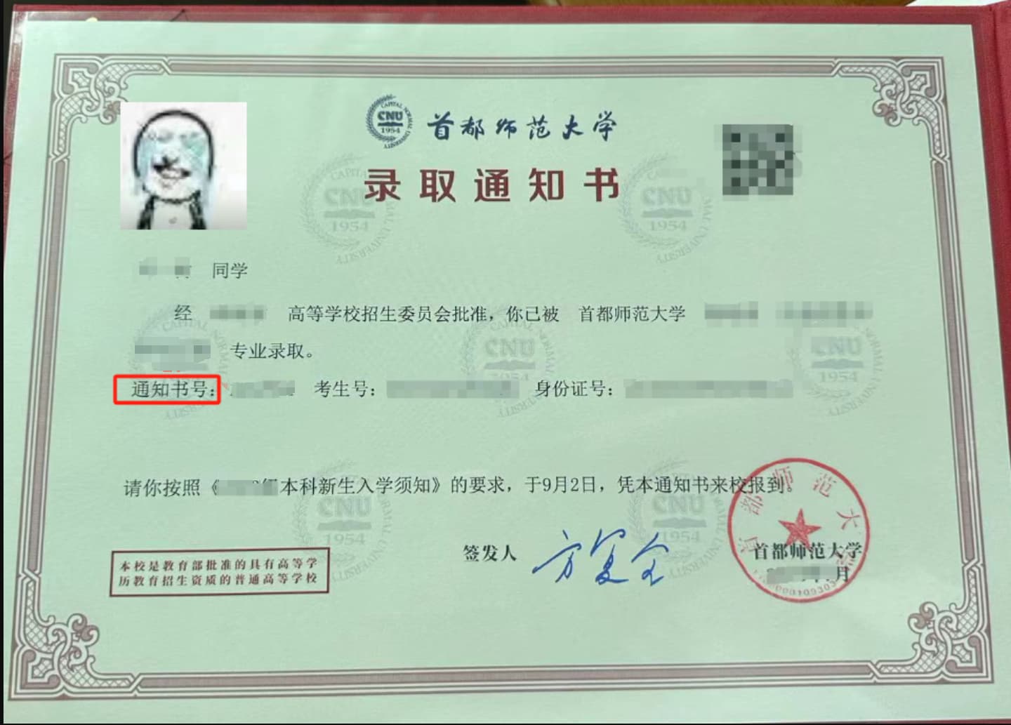 注:请牢记你的学号,学号是你在首师大的唯一有效凭证,之后不管你是转专业了还是留级,你的学号都不会改变,除非你选择留校继续读研