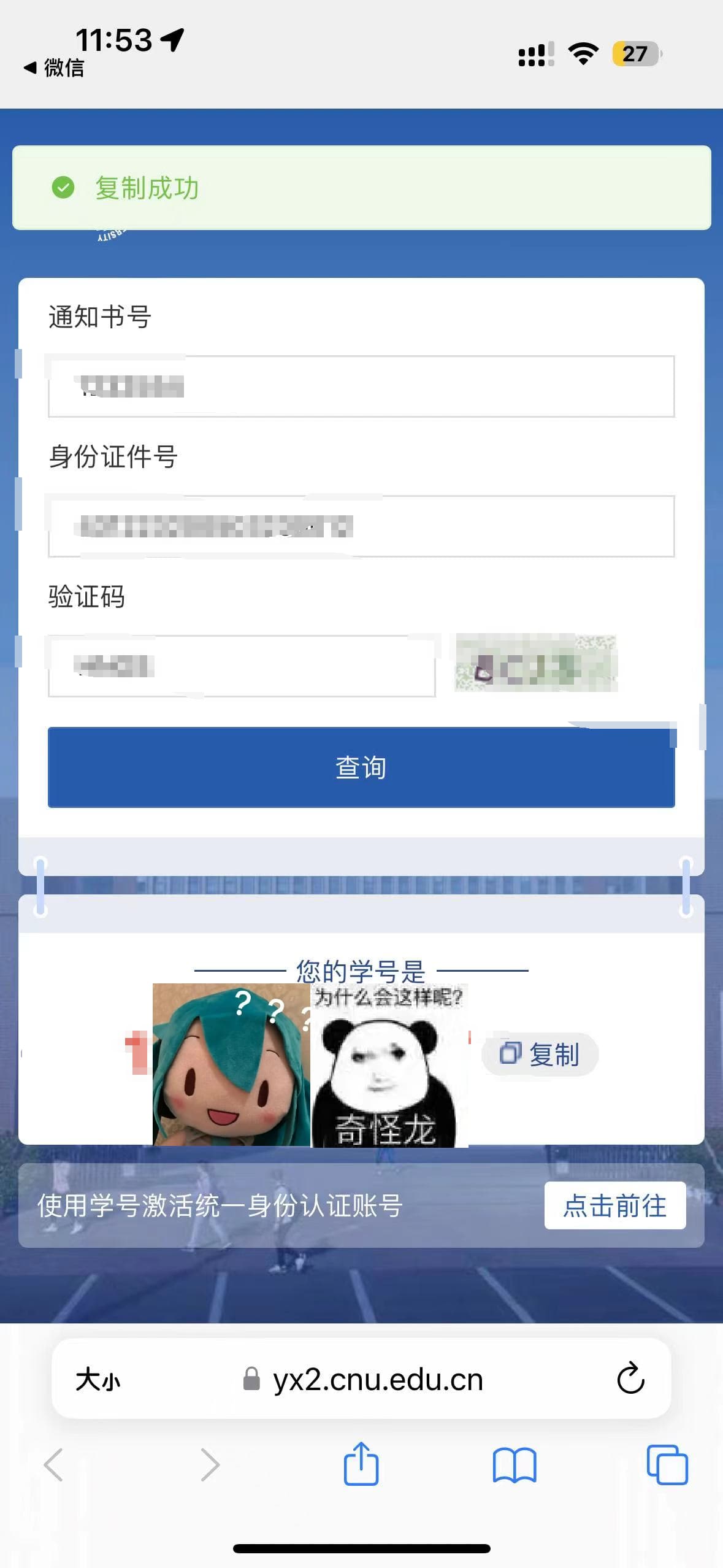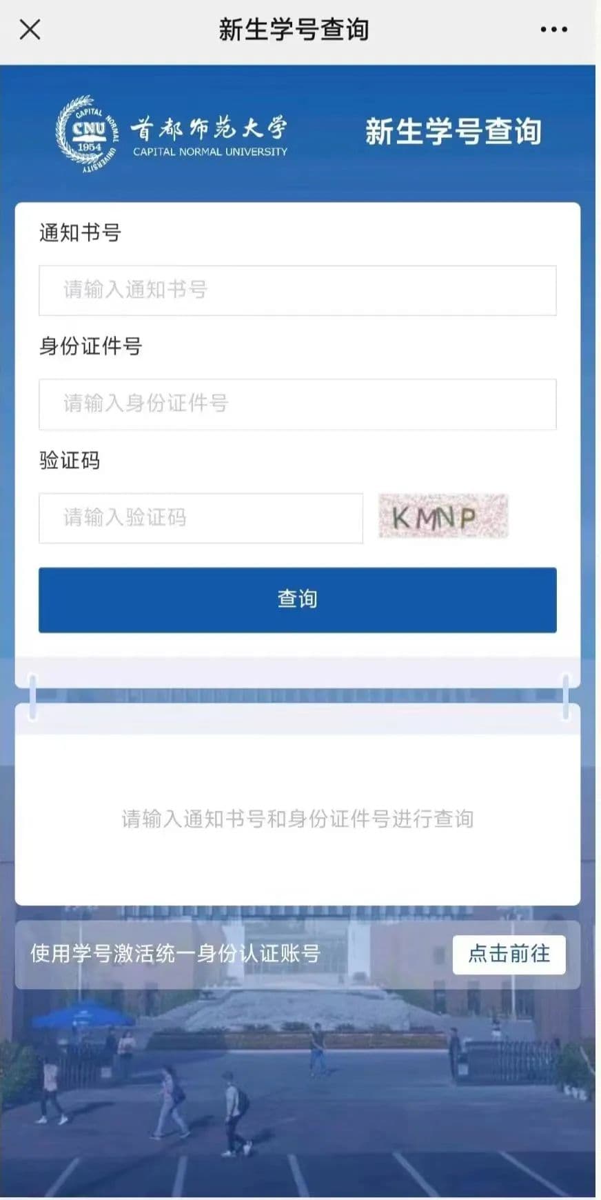 扫描上图二维码,进入学号查询界面: